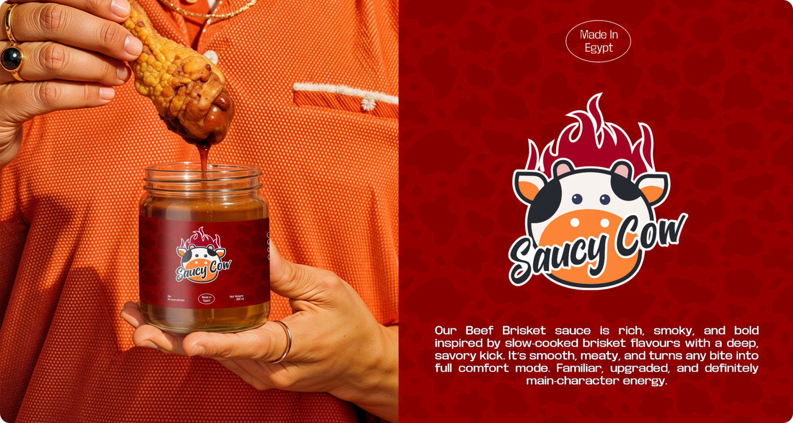 Saucy Cow, a modern food brand centered around rich flavors and a distinctive personality, required a vibrant identity aligned with its concept. As it stepped into a competitive space, the aim was to build a bold and lasting presence.